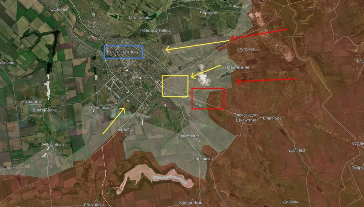 Російські війська намагаються інфільтруватися у Костянтинівку, застосовуючи велику кількість піхоти. Найбільше просочувань і спроб накопичення фіксується в приватному секторі на південно-східних околицях міста. Про це повідомляє OSINT-проєкт DeepState.